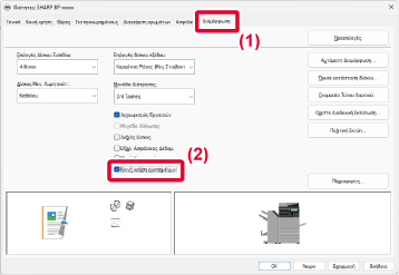 Για τις επεξηγήσεις των ρυθμίσεων, δείτε τη Βοήθεια του προγράμματος οδήγησης εκτυπωτή.Κατά τη χρήση του συγκεκριμένου μηχανήματος