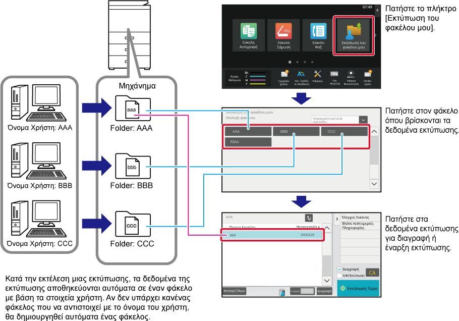 δεδομένα εκτύπωσης σε φακέλους για κάθε χρήστη.
