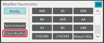 Πατήστε το πλήκτρο [Μέγεθ. Σάρωσης] και, στη συνέχεια, την καρτέλα [Ειδικο Μεγεθοσ].