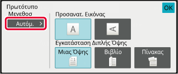 Πατήστε το πλήκτρο [Πρωτότυπο] και πατήστε το πλήκτρο [Βιβλίο] ή το πλήκτρο [Πίνακας].