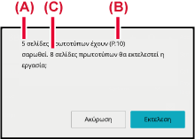 Ο αριθμός που εμφανίζεται είναι ο αριθμός των φύλλων των σαρωμένων πρωτοτύπων και όχι ο αριθμός των σελίδων των σαρωμένων πρωτοτύπων. Για παράδειγμα, όταν εκτελείται αντιγραφή διπλής όψης με χρήση ενός πρωτοτύπου, εμφανίζεται ο αριθμός "1" για να υποδειχθεί ότι σαρώθηκε ένα φύλλο πρωτοτύπου και όχι ο αριθμός "2" για να υποδειχθεί η μπροστινή και η πίσω σελίδα.