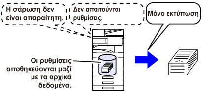 Κατά την εκτέλεση αντιγραφής, σάρωσης ή άλλης εργασίας, με τη λειτουργία αυτή τα δεδομένα των εγγράφων αποθηκεύονται στην τοπική μονάδα δίσκου. Χρησιμοποιήστε τη λειτουργία αυτή, όταν θέλετε να αποθηκεύσετε δεδομένα πρωτοτύπου γρήγορα και εύκολα, χωρίς να ορίσετε όνομα αρχείου ή άλλες πληροφορίες. Το αποθηκευμένο αρχείο μπορεί να χρησιμοποιηθεί και από άλλα άτομα. Μη χρησιμοποιείτε τη μέθοδο αυτή για την αποθήκευση αρχείων, τα οποία δεν θέλετε να χρησιμοποιούν άλλοι. |