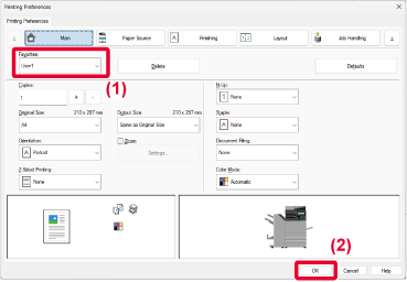For explanations of the settings, see printer driver Help.When using this machine as a shared printer,