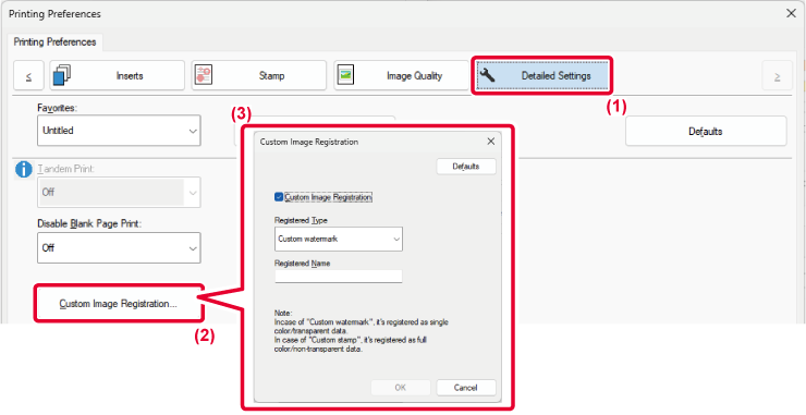 When [Custom stamp] is selected in "Registered Type", a full-color,