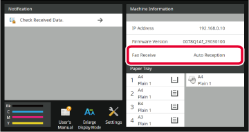 • Received faxes will not be printed when the machine cannot print due to an error condition such as out of paper, out of toner, or a paper misfeed. The faxes will be printed automatically when the error condition is cleared. (If the paper has run out, add paper and tap on the touch panel.)