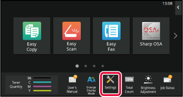 Make sure that the information indicator is blinking in white, and tap the [Settings] key in the home screen.