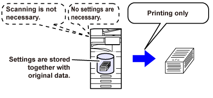 As a copy, image send, or other job is performed, this function saves the document data to the local drive. Use this function when you want to quickly and easily store document data without specifying a file name or other information. The stored file can also be used by other people. Do not use this method to save files that you do not want others to use. |