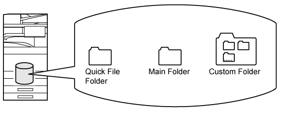 As a copy, image send, or other job is performed, this function saves the document data to the local drive. Unlike Quick File, various types of information can be appended to the file when the file is saved to enable efficient file management. A password can also be established. |