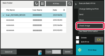 • Depending on the size of the image, part of the image may be clipped off in the image check screen on the touch panel.