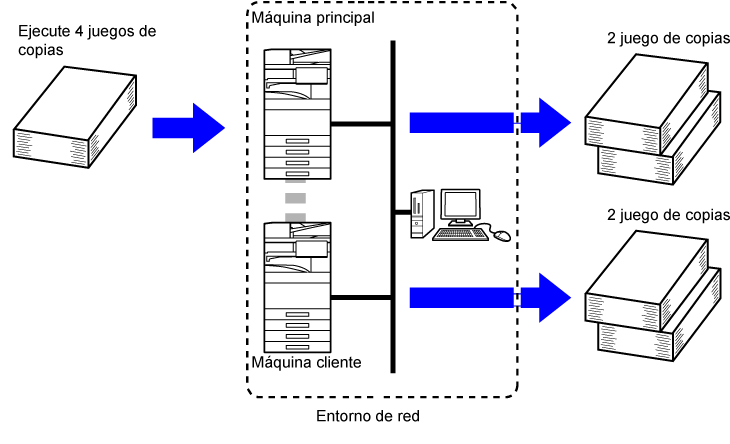 Pueden definirse hasta 9999 copias (juegos). El número especificado de copias se comparte entre la unidad principal y la secundaria. Si el número de copias es impar, la unidad principal realiza más copias que la secundaria.