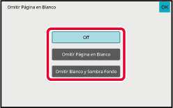 Pulse la tecla [Omitir Página en Blanco] o la tecla [Omitir Blanco y Sombra Fondo].