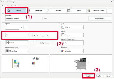 seleccionar en la ventana de propiedades del controlador de la impresora.