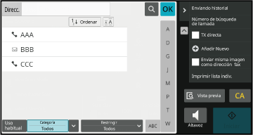 tecla [Libreta de direcciones] en la pantalla inicial en modo de envío de imágenes,