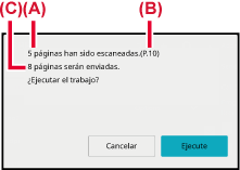 El número que se muestra es el número de las hojas escaneadas del original, no el de las páginas escaneadas del original. Por ejemplo, cuando se realiza una copia a dos caras usando un único original, se mostrará el número "1" para indicar que se ha escaneado una hoja del original, y no el número "2" para indicar el escaneado del anverso y el reverso.