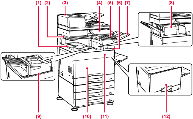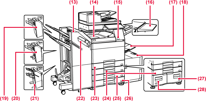 Tulosteet toimitetaan tälle tasolle. Voit myös tulostaa työt työn erotintasolle (keskitaso), kun asennetaan välitysyksikkö.