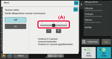 Kosketus Kosketa paneelia sormella ja nosta se sitten nopeasti. Tällä tavalla valitaan näppäin, välilehti tai valintaruutu. |