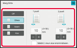 Kosketa numeroarvonäyttöä, jossa näkyy marginaalin siirron alue etupuolella tai taustapuolella, ja syötä alue numeronäppäimillä.