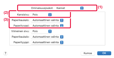 Etukansi ja takakansi tulostetaan käyttämällä paperia,