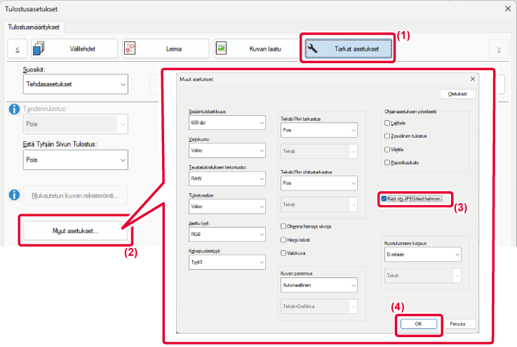 Tulostettaessa JPEG-kuvia sisältävää alkuperäisasiakirjaa
