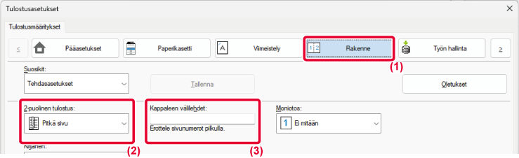 Valitse tulostinohjaimen ominaisuudet -ikkunan [Välilehti]
