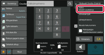 Osoitteen faksinumeron voi hakea koskettamalla osoitteen pikanäppäintä