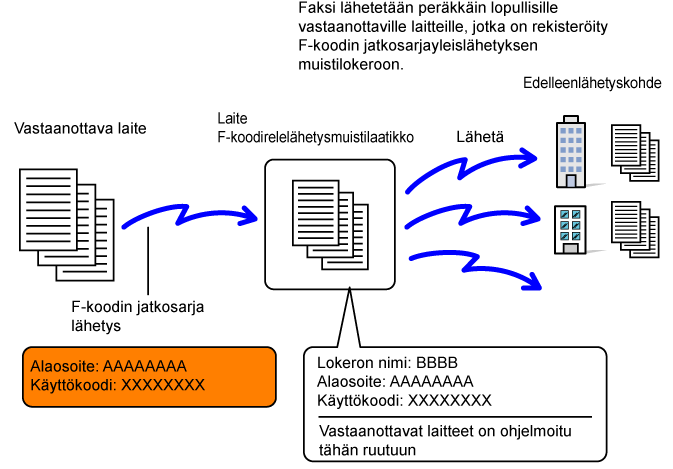 Lähettämällä faksin F-koodin muisti lokeroon