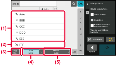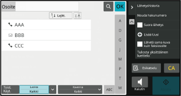 Avaa osoitekirja koskettamalla [Osoitekirja]-näppäintä