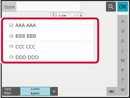 Kun käytät osoitekirjaa Easy Scan -näytössä tai sähköpostitilassa,