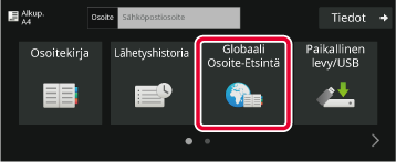 kohteen yleisestä osoitekirjasta koskettamalla [Yleinen osoitehaku] tehtäväpaneelissa.