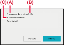 Merkkiääni osoittaa, että skannaus on päättynyt.Kun skannaaminen päättyy, tarkista alkuperäisten arkkien määrä ja lähetettävien arkkien määrä ja kosketa [OK] käynnistääksesi lähetyksen.