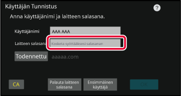 Laitteen salasana on laitteen autentikoinnin salasana.