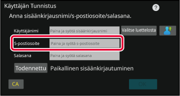 saattaa näkyä näytöllä. Kosketa [S-postiosoite]-tekstiruutua ja anna