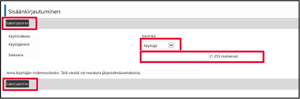 • Katso lisätietoja kirjautumismenettelyistä kun käyttäjän tunnistus on käytössä kohdasta " KÄYTTÄJÄN TUNNISTUS".