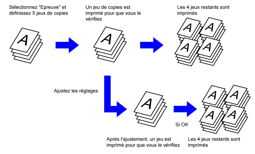 Si nécessaire, modifiez les réglages et répétez le processus de copie d'épreuve jusqu'à ce que vous soyez satisfait du résultat obtenu.