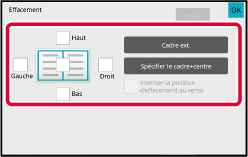 Appuyez sur l’affichage de la valeur numérique indiquant la zone de largeur d'effacement sur le recto ou le verso et saisissez la zone en utilisant les touches numériques.