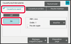 Appuyez sur la touche [Couverture avant], puis appuyez sur la touche [On].