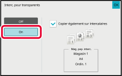 Lorsque vous réalisez une copie sur des transparents, appuyez sur la case à cocher [Copier également sur intercalaires] pour la définir sur