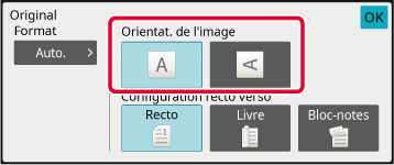 Appuyez sur la touche [Orientat. de l'image] présentant la même orientation que celle de l'original en place.
