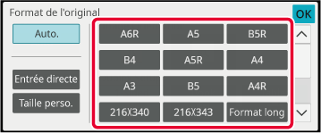 Après avoir sélectionné la touche du format original, appuyez sur la touche