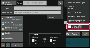 Lorsque [Activer l'envoi du lien de destination par défaut] est activé dans les réglages