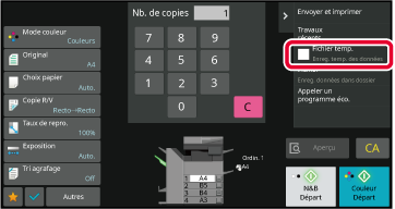 Placez l'original sur le magasin du chargeur automatique de documents ou sur la vitre d'exposition.Passez en mode normal et appuyez sur [Fichier temp.] du