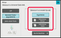 Az eredetik függvényében érintse meg a [Egyoldalas], [Kétoldalas Könyv] vagy a [Kétoldalas Tabló] gombot.