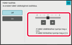 A [Háttér beállítás] menüben a [+] gombbal a hátteret sötétíti,