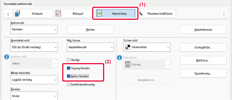 Válassza ki, hogy a fekete adatterületet csak fekete festékkazettával nyomtatja-e. |