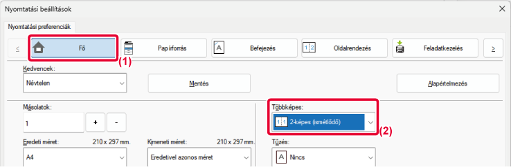 az indexfüles papír méretét a "Kimeneti méret" lehetőségei közül.Ezzel a funkcióval meghatározott oldalakat