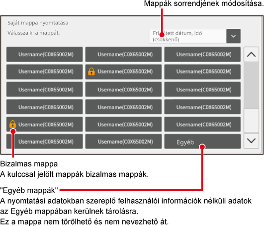 A felhasználók a nyomtatási adatokat a saját mappáikból nyomtathatják