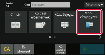 Az alapképernyőn vagy a címtár képernyőn koppintson a kezelőpanelen található [Lásd: Mobil címjegyzék] gombra.