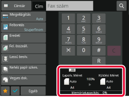 A fenti képernyőn a lapolvasási méret (a behelyezett
