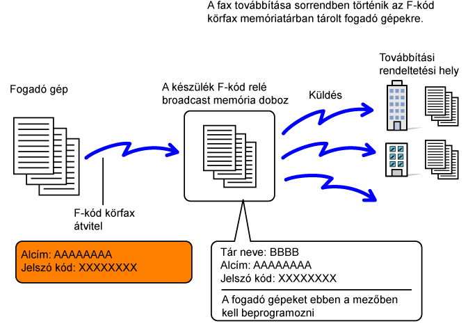 A gép majd továbbítja a faxot minden a memóriatárba programozott