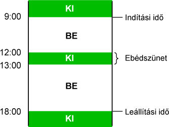Adja meg a gép módok időintervallumait. Válasszon módot 1-4 között, és válassza ki a hét egy napját, a kezdési időt és befejezési időt. |